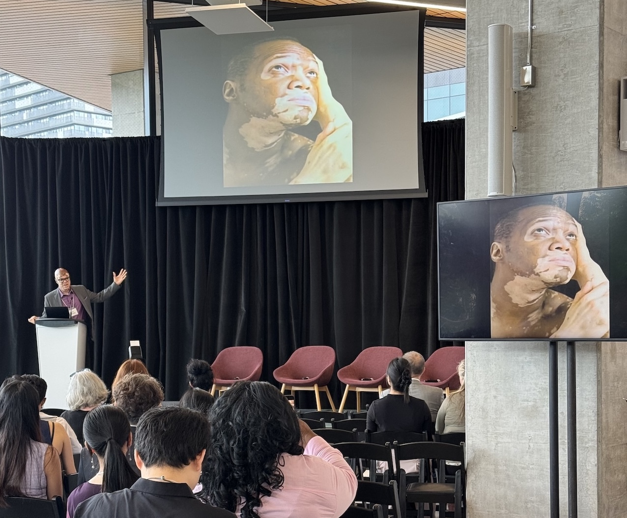The big winner? Dr. Jacqueline Cifuentes, for her haunting black-and-white image Cadenas del Vitiligo (Chains of Vitiligo) of a man with vitiligo behind prison bars. Photorealistic, stark, and loaded with meaning: Was he trapped by society? By stigma? By his own skin? Yes — all of the above.